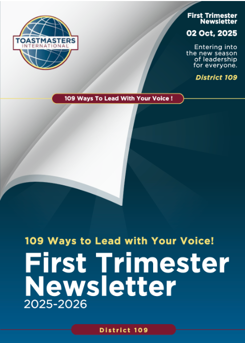 🎉 Congrats to the amazing District 109 Toastmasters on their first newsletter! 🥳 We’re thrilled to celebrate this milestone with your fantastic community.