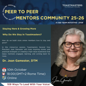 ✨ Discover how to create clubs people love to stay in! Join Toastmasters Second Vice President Dr. Jean Gamester as she shares stories and strategies to boost member value and retention. 💡🎤
